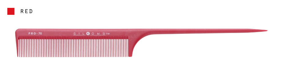 プロのためにデザインされたプロフェッショナルコーム。その使い易さは、全世界のヘアーアーティストに最も高い評価を受けています。「シリコーム」は最高級樹脂にシリコンを配合。ソフトで滑らかなクシ通りの良さが実現しました。クシの歯先・歯裏・歯の根元を手づくり仕上げの様に1本1本吟味され、髪または頭皮を傷めない歯先形状、特に歯の根元の部分は最高の仕上げを施してあります。